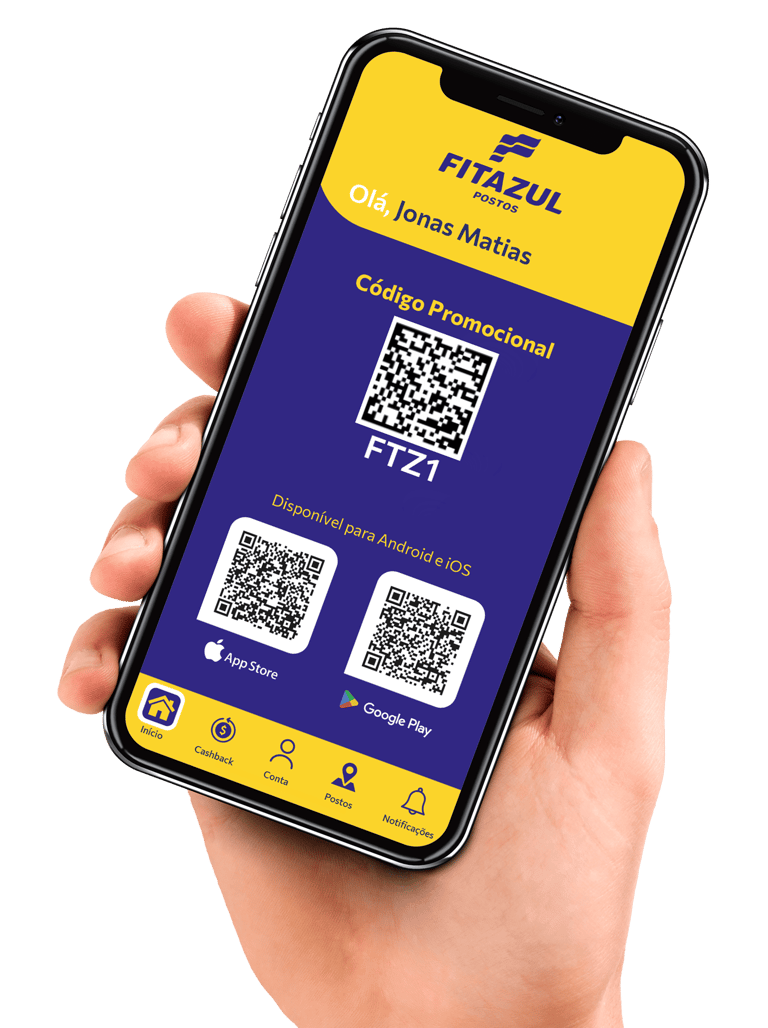 Ganhe cashback e acumule a cada abastecimento. Troque por descontos e fique por dentro das promoções direto no app Fitazul.